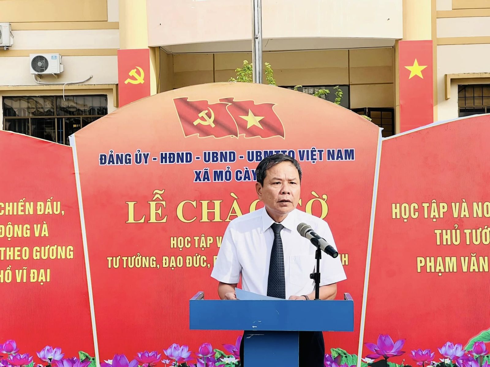 Sáng ngày 06/10/2025, Đảng ủy xã Mỏ Cày tổ chức Lễ chào cờ Tổ quốc và sinh hoạt chính trị dưới cờ tháng 10 năm 2025. Tham dự buổi lễ có đồng chí Võ Lâm - Bí thư Đảng ủy, Chủ tịch HĐND xã; Nguyễn Nữ Tường Vy - Phó Bí thư Thường trực Đảng ủy xã; Trần Ngọc Nam – PBT Đảng ủy, Chủ tịch UBND xã; Huỳnh Minh Hải – UVBTV, Phó Chủ tịch HĐND xã; Huỳnh Thị Thùy Trang - Ủy viên Ban Thường vụ Đảng ủy, Chủ tịch UBMTTQVN xã; cùng các đồng chí trong Ban Thường vụ Đảng ủy, Thường trực HĐND, UBND, UBMTTQVN, lãnh đạo các tổ chức chính trị - xã hội; cán bộ, công chức, viên chức, lực lượng vũ trang và đại diện Ban giám hiệu các trường học trên địa bàn xã.
