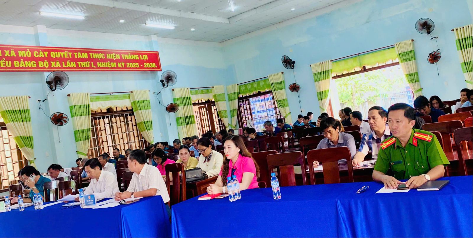 Sáng ngày 17/11/2025, xã Mỏ Cày triển khai công tác tuyển chọn và gọi công dân nhập ngũ năm 2026. Tham dự hội nghị có Đại diện lãnh đạo Ban chỉ huy Khu vực Phòng thủ 5 (KVPT5) - Đức Phổ; Đ/c Võ Lâm, Bí thư Đảng ủy – Chủ tịch HĐND xã; Thành viên Hội đồng nghĩa vụ Quân sự xã và Tổ thực hiện công tác tuyển chọn và gọi công dân nhập ngũ năm 2026 trên địa bàn xã; Trưởng các trạm Y tế trên bàn xã. Đ/c Trần Ngọc Nam – PBT, Chủ tịch UBND xã, Chủ tịch HĐNVQS xã và đ/c Nguyễn Minh Tấn – UVBTV – Chỉ huy trưởng BCHQS xã, Phó CT Thường trực HĐNVQS xã đồng chủ trì hội nghị.