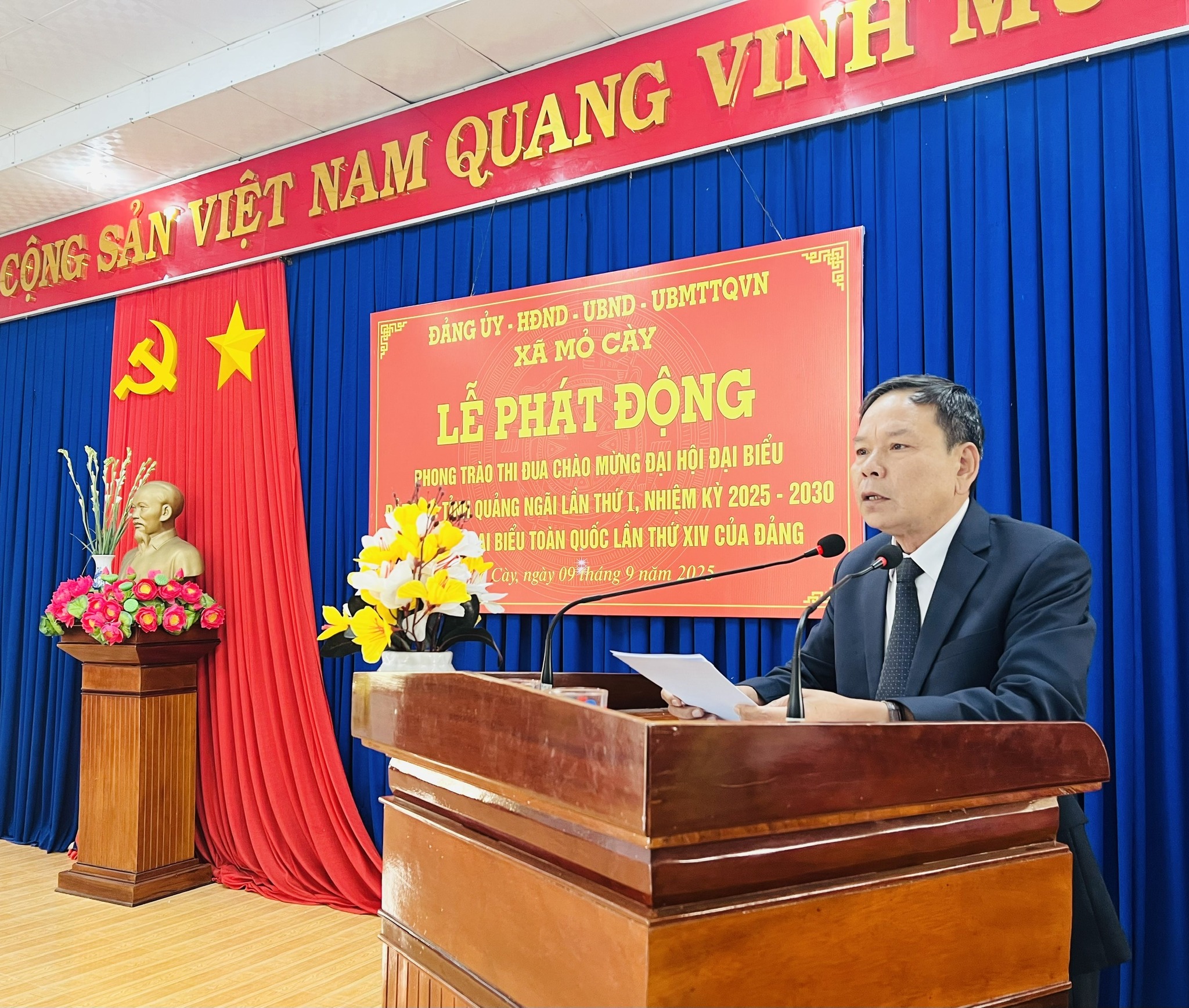 Sáng ngày 09/9, Đảng uỷ, HĐND, UBND, UBMTTQVN xã Mỏ Cày tổ chức Lễ phát động phong trào thi đua chào mừng Đại hội đại biểu Đảng bộ tỉnh Quảng Ngãi lần thứ I, nhiệm kỳ 2025-2030 và Đại hội đại biểu toàn quốc lần thứ XIV của Đảng.