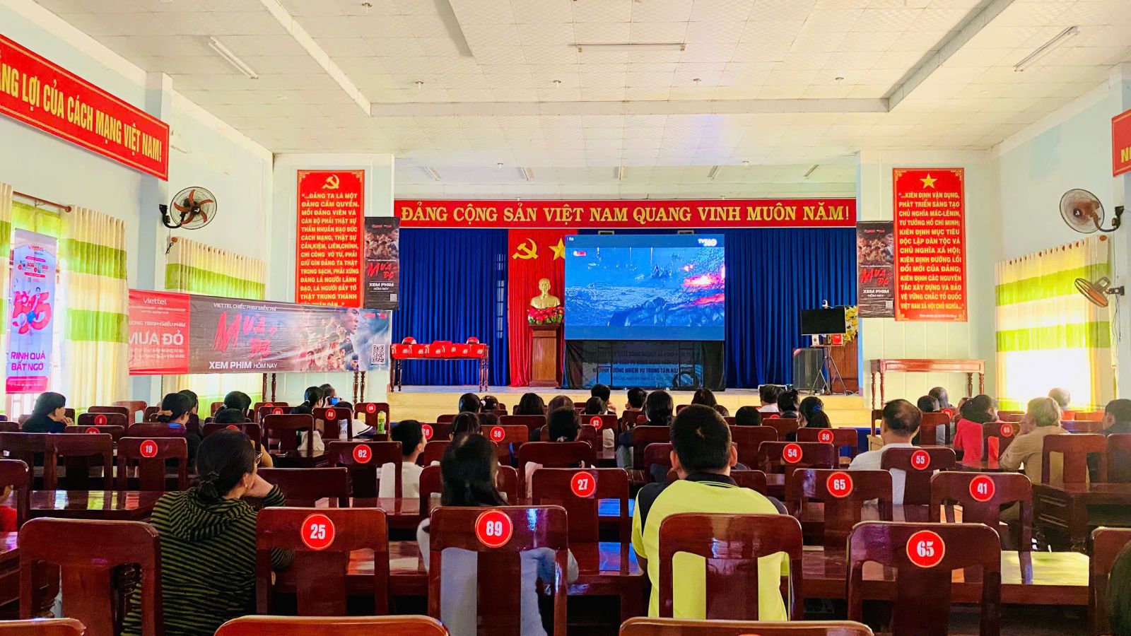 Nhằm lan tỏa giá trị lịch sử, khơi dậy niềm tự hào, tinh thần yêu nước, truyền thống dân tộc, hướng đến kỷ niệm 81 năm ngày thành lập Quân đội nhân dân Việt Nam (22/12). Vừa qua, trong 03 ngày 04,05,06/12, Ủy ban nhân dân xã Mỏ Cày phối hợp với Viettel Quảng Ngãi đã tổ chức công chiếu miễn phí phim “Mưa Đỏ” tại Trung tâm Văn hóa – Thể thao xã và các trường THCS Đức Chánh, THCS Minh Thạnh.