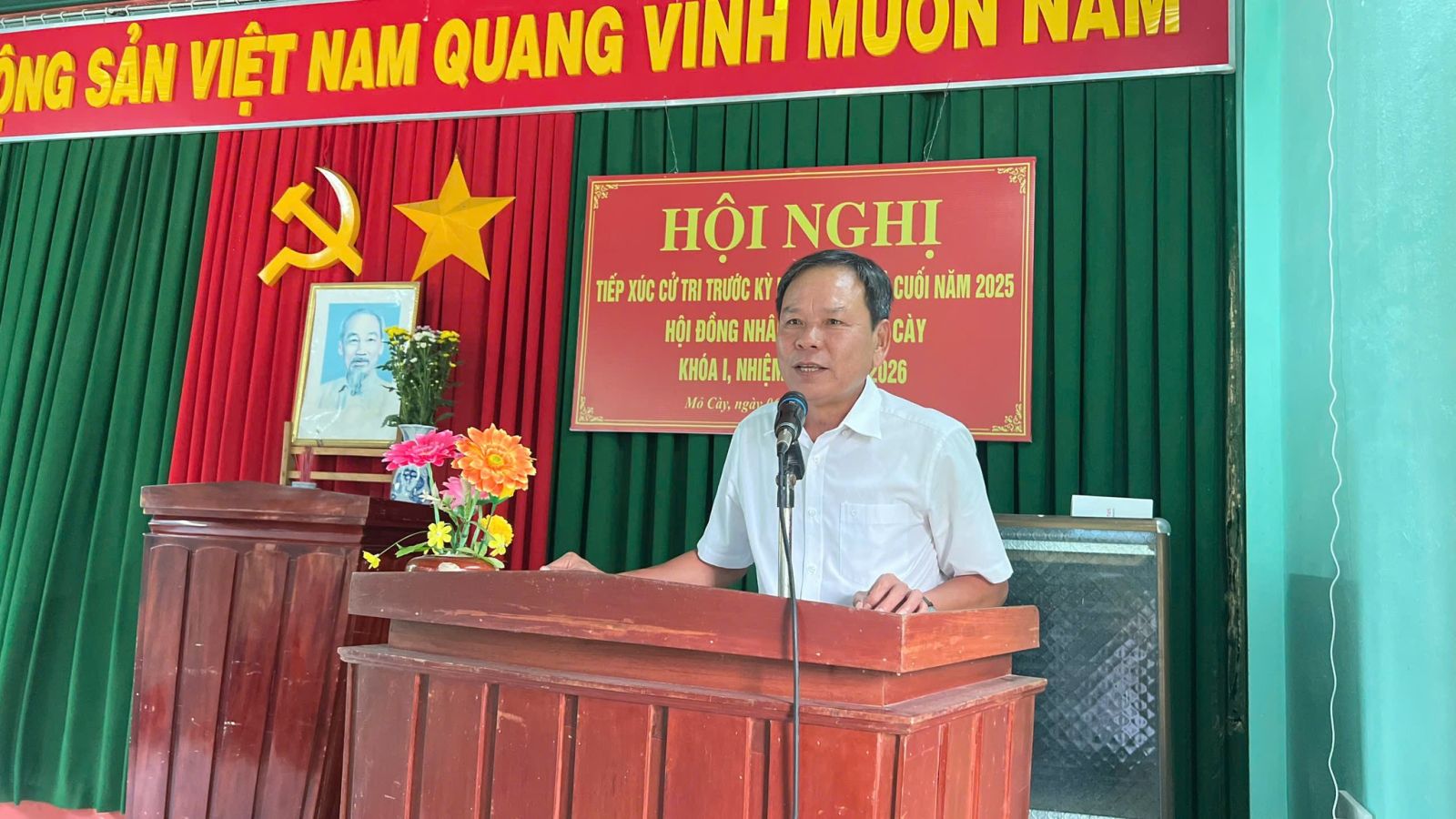 Tại buổi tiếp xúc, đại diện Tổ đại biểu HĐND xã Mỏ Cày đã thông tin đến bà con cử tri tình hình kinh tế - xã hội, quốc phòng - an ninh của xã 9 tháng đầu năm 2025 và nhiệm vụ những tháng cuối năm 2025; Báo cáo tình hình hoạt động của Thường trực HĐND xã và các Ban của HĐND xã trong 9 tháng đầu năm 2025; Kết quả giải quyết các ý kiến, kiến nghị của cử tri trong các đợt tiếp xúc trước.