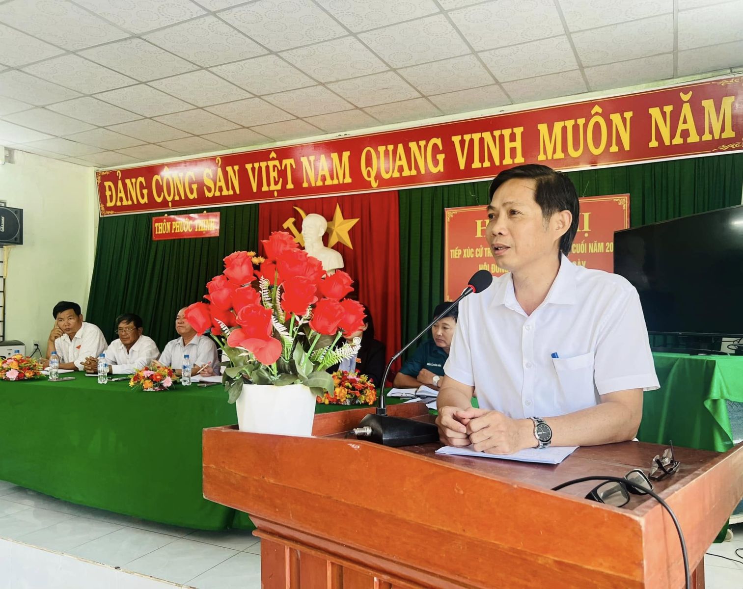 Tham dự buổi tiếp xúc cử tri của 02 thôn có các đồng chí Trần Ngọc Nam – Phó Bí thư Đảng ủy, Chủ tịch UBND xã; Huỳnh Minh Hải – UVBTV, Phó Chủ tịch HĐND xã; Huỳnh Thị Thùy Trang - Ủy viên Ban Thường vụ Đảng ủy, Chủ tịch UBMTTQVN xã; Đặng Quốc Thái - ĐUV, Phó Chủ tịch UBND xã.