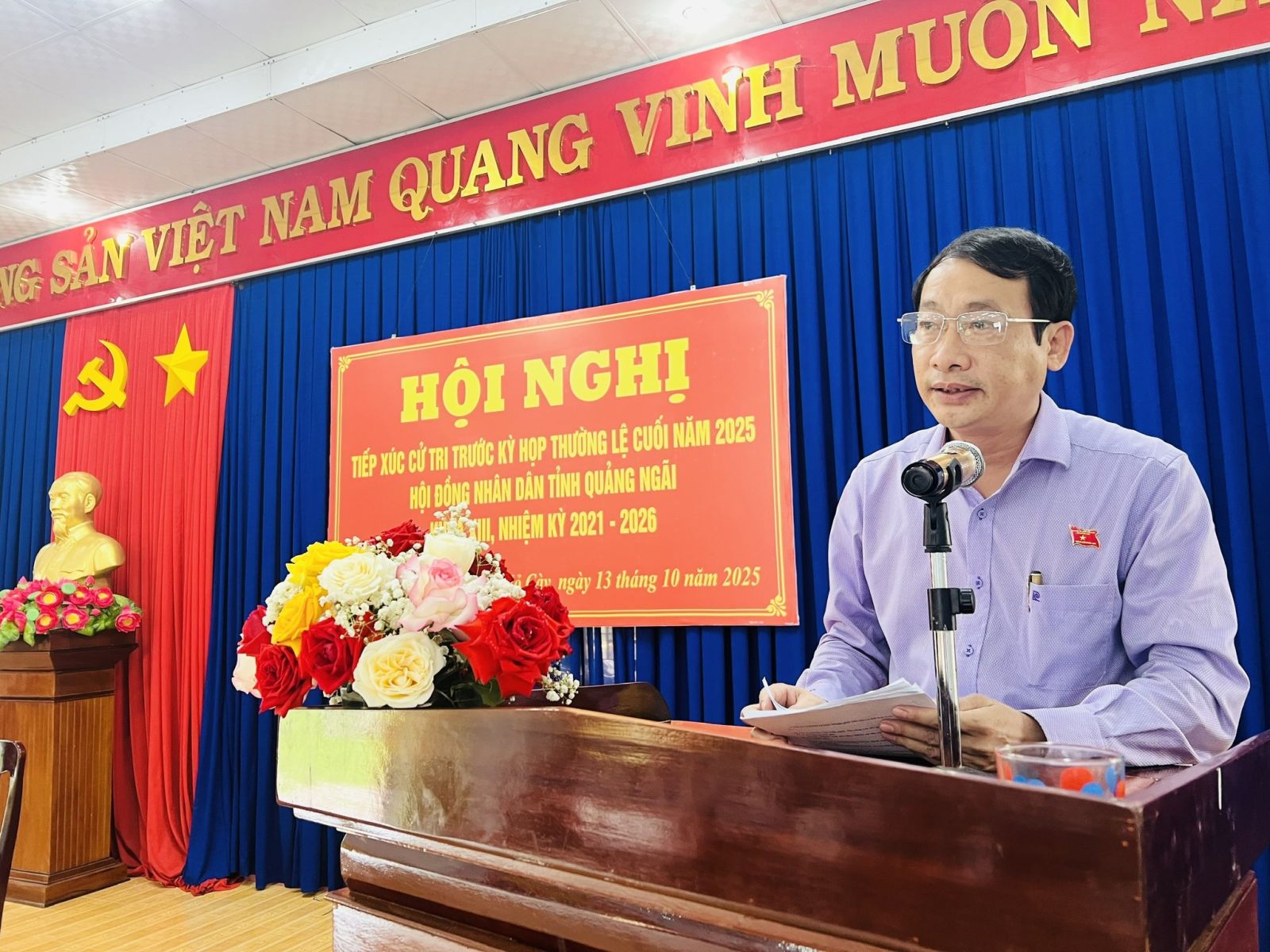 Tại buổi tiếp xúc, Tổ đại biểu HĐND tỉnh số 11 đã báo cáo kết quả tình hình kinh tế - xã hội của tỉnh; tình hình kết quả hoạt động của Thường trực, các Ban HĐND trong 9 tháng đầu năm, triển khai nhiệm vụ 3 tháng cuối năm; Báo cáo kết quả giải quyết ý kiến, kiến nghị của cử tri tại các cuộc tiếp xúc cử tri trước kỳ họp giữa năm 2025; Dự kiến nội dung, chương trình kỳ họp thường lệ cuối năm 2025.