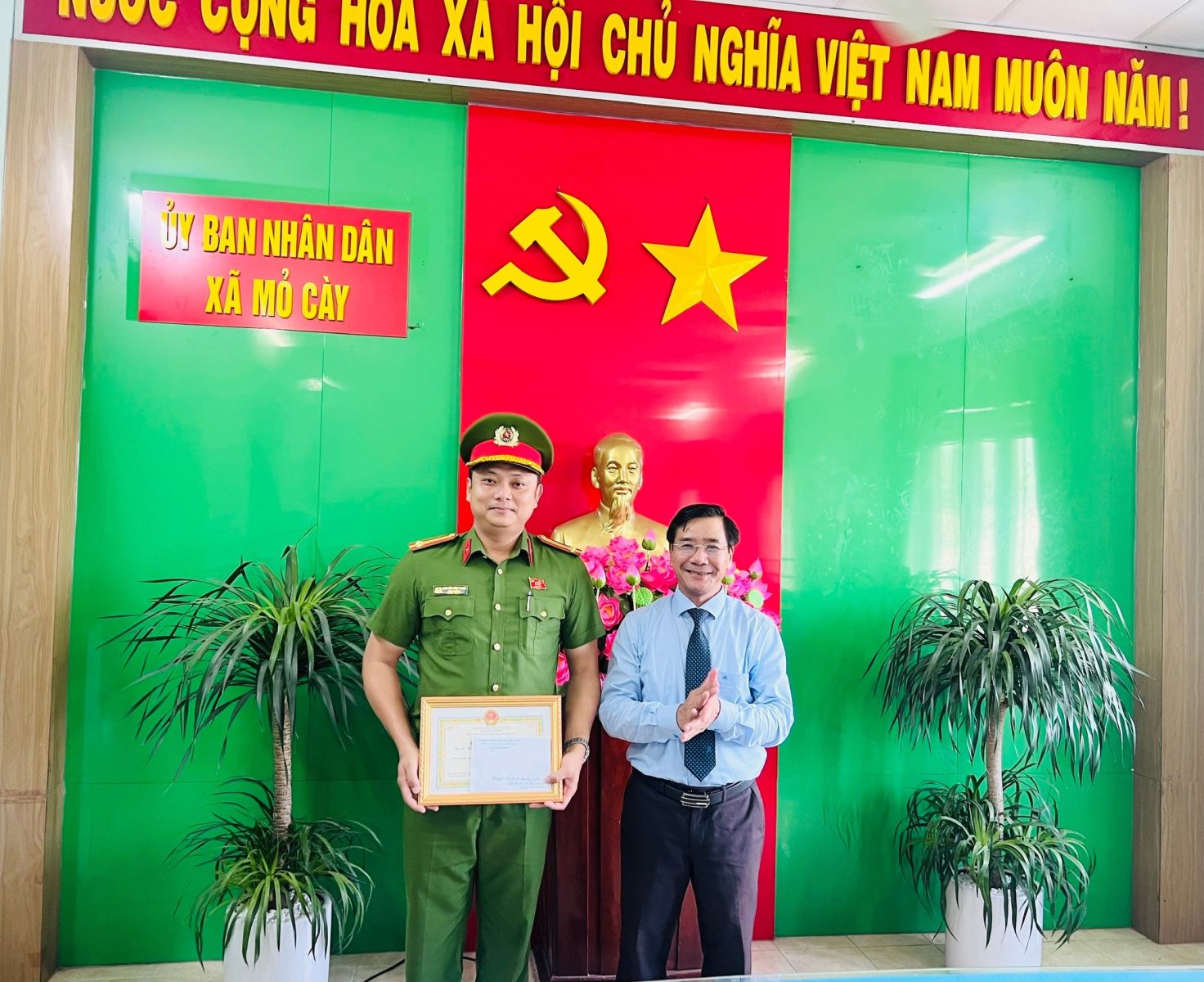 Ghi nhận những kết quả đạt được, Chủ tịch UBND xã Mỏ Cày đã trao giấy khen cho tập thể Tổ Cảnh sát phòng chống tội phạm và 07 cá nhân có thành tích xuất sắc trong công tác tấn công, trấn áp tội phạm.