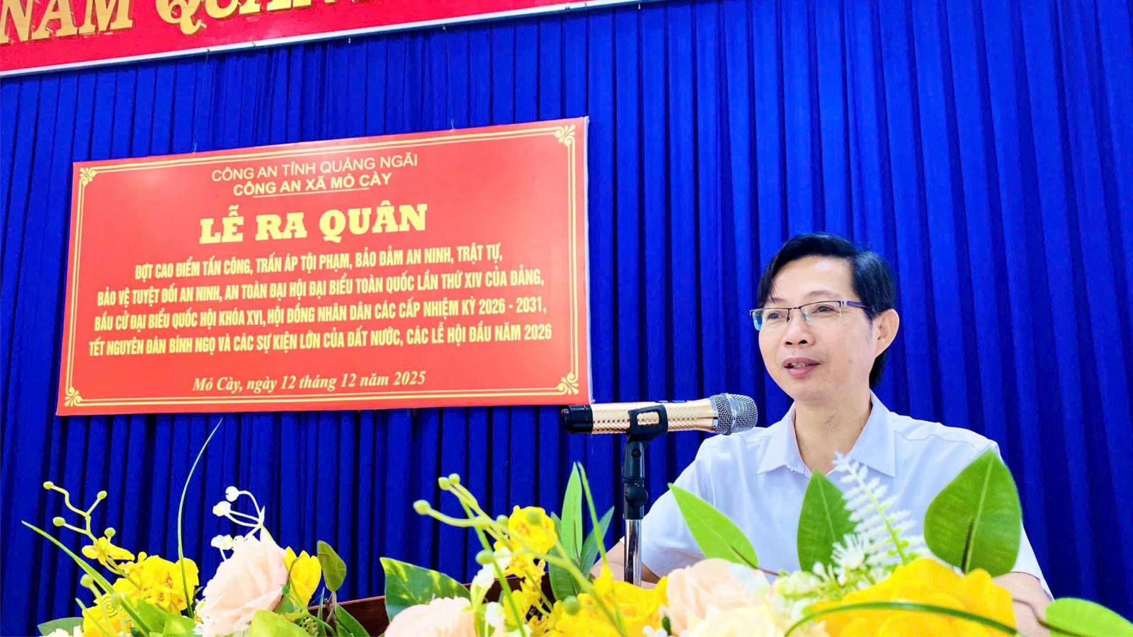 Sáng ngày 12/12/2025, Công an xã Mỏ Cày tổ chức Lễ ra quân thực hiện cao điểm tấn công, trấn áp tội phạm, bảo đảm an ninh, trật tự, bảo vệ tuyệt đối an ninh, an toàn Đại hội đại biểu toàn quốc lần thứ XIV của Đảng, bầu cử đại biểu Quốc hội khóa XVI, Hội đồng nhân dân các cấp nhiệm kỳ 2026-2031, tết Nguyên đán Bính Ngọ và các sự kiện lớn của đất nước, các lễ hội đầu năm 2026. Đồng chí Trần Ngọc Nam – Phó Bí thư Đảng ủy, Chủ tịch UBND xã dự, chỉ đạo. Tham dự Lễ ra quân có đại diện lãnh đạo UBMTTQVN xã, Đồn Biên phòng Đức Minh, các cơ quan, ban, ngành, hội, đoàn thể, Chi hội Cựu CAND xã cùng tập thể lãnh đạo, cán bộ, chiến sĩ Công an xã và thanh viên tổ bảo vệ ANTT trên địa bàn.