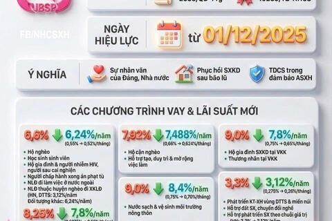 Mức lãi suất mới của các chương trình tín dụng chính sách nêu trên sẽ chính thức được áp dụng từ 1/12/2025 đối với khoản vay còn dư nợ tại NHCSXH.
