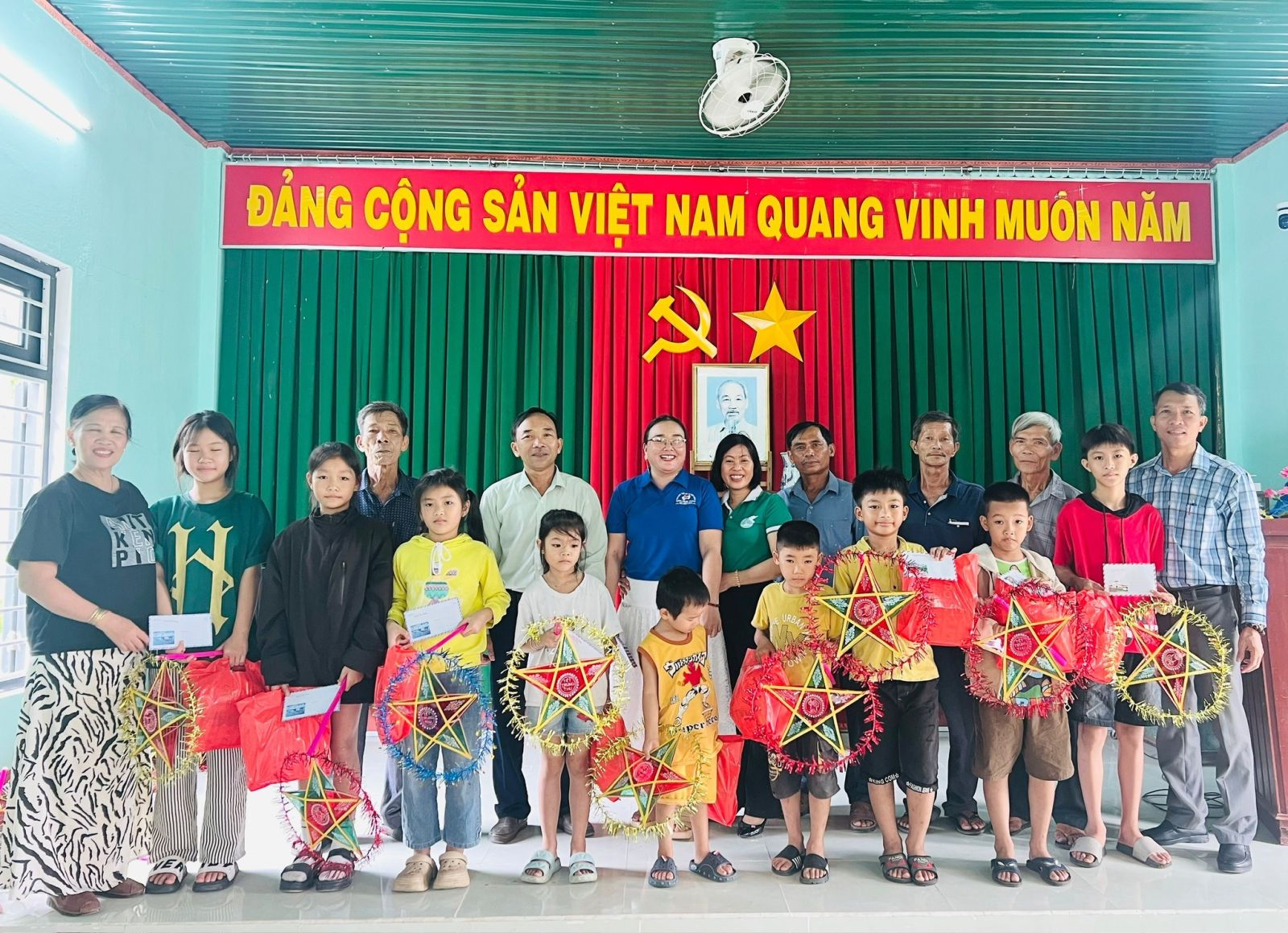 Dịp này, bà Nguyễn Thị Hưởng trực tiếp trao 45 suất quà, mỗi suất trị giá 200 nghìn đồng, gồm 100 nghìn tiền mặt cùng bánh kẹo, lồng đèn. Tổng kinh phí của đợt trao quà là 9 triệu đồng.