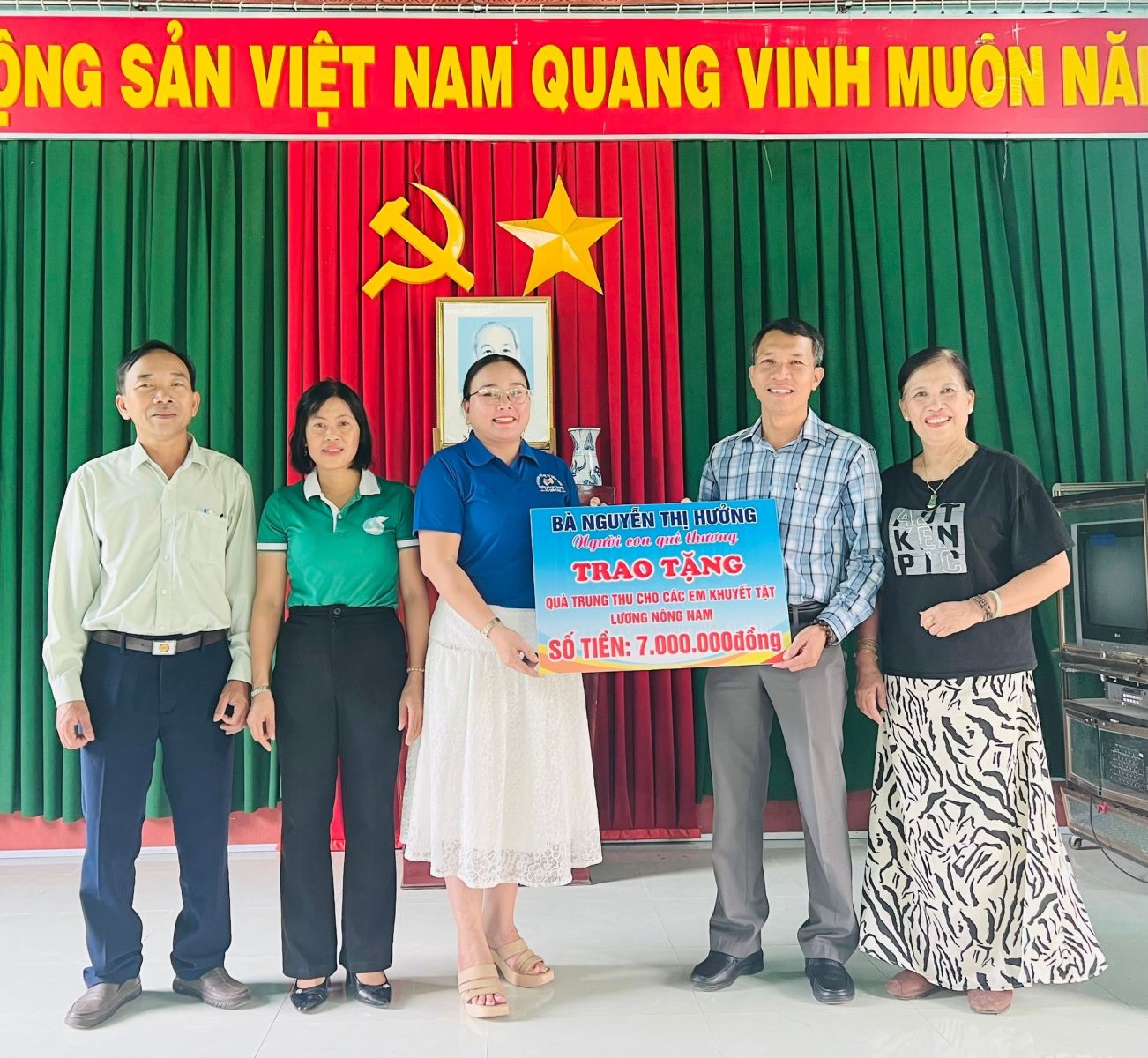Nhân dịp Tết Trung thu năm 2025, sáng ngày 05/10, thôn Lương Nông Nam phối hợp với bà Nguyễn Thị Hưởng – người con quê hương đã tổ chức trao tặng quà cho trẻ em khuyết tật, có hoàn cảnh khó khăn trên địa bàn thôn.